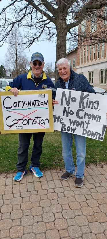 Jonathan & John at the “Hands Off” protest April 5, 2025 two months before the first “No King’s Day” protest.