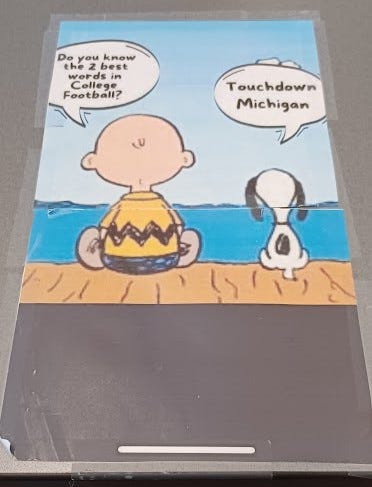 Don’t get me wrong. My picture includes the right words. It’s just the wrong time. Michigan seeks, in this season of March madness, not a football championship, but one in basketball.